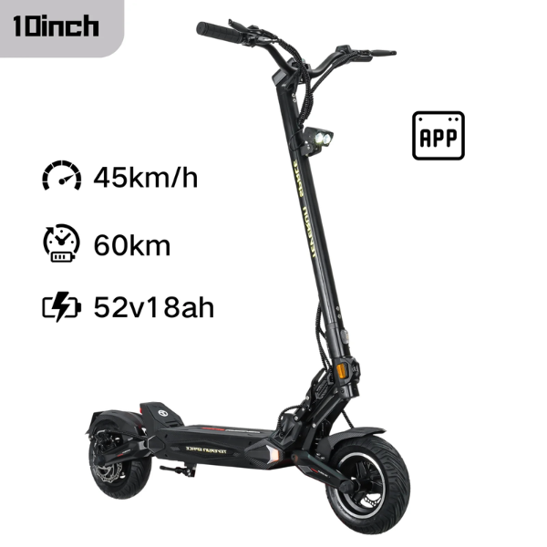 Suspensions à ressort avant/arrière et pneus tubeless 10×3,0 pouces absorbent vibrations et chocs urbains. L’écran LCD 3 pouces avec NFC et l’app Teverun V1.0 facilitent le suivi en temps réel.